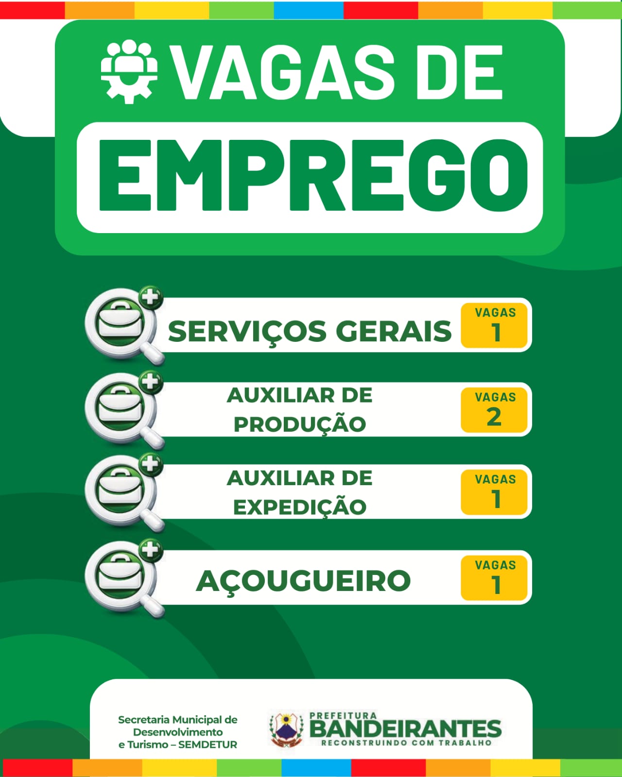 Confira as vagas de emprego desta sexta-feira (20) em Bandeirantes